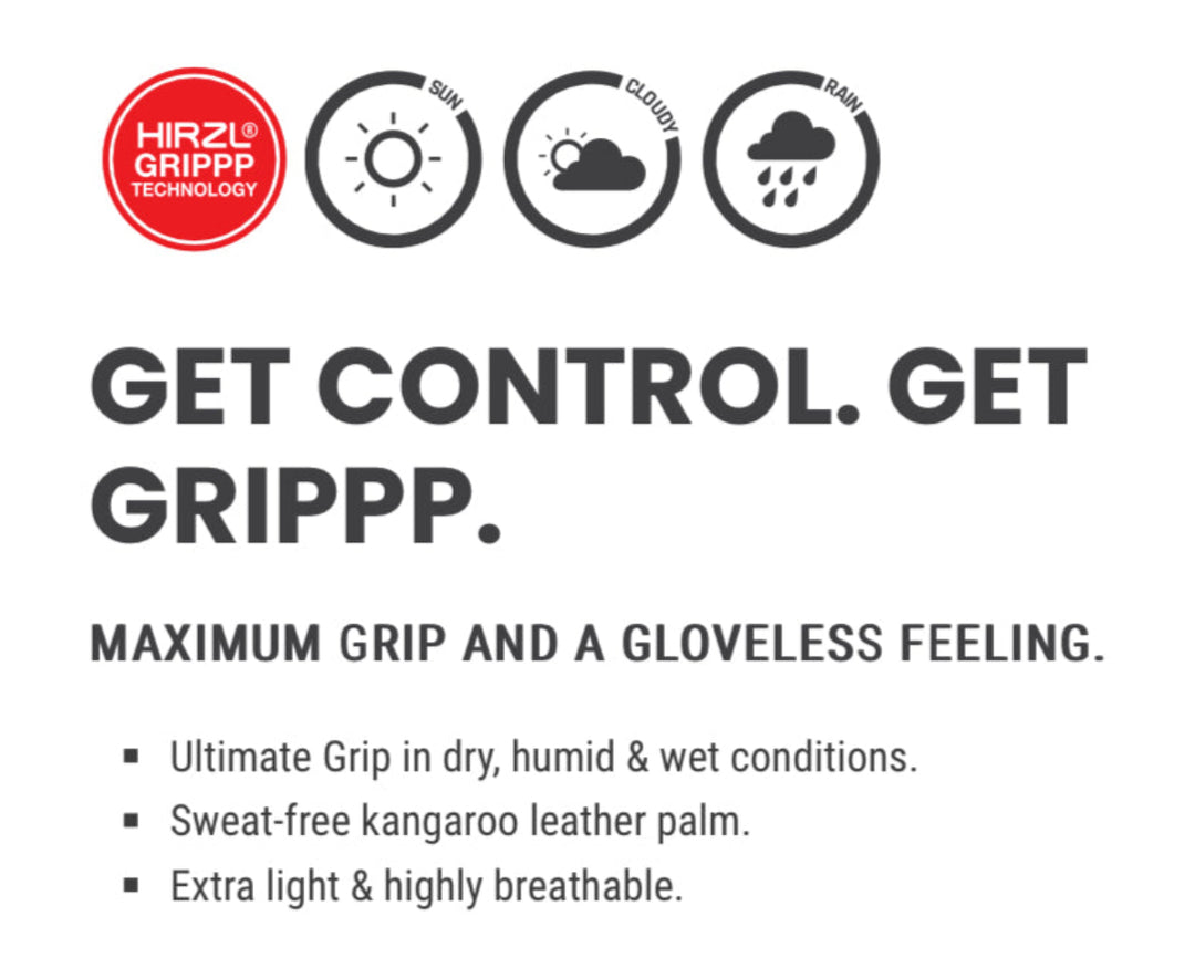 The revolutionary HIRZL® GRIPPP technology is based on a secret and multistage tanning procedure, giving the kangaroo leather unparalleled values in grip during all weather conditions.